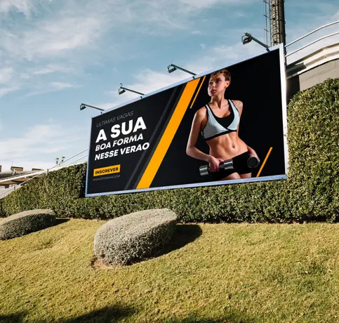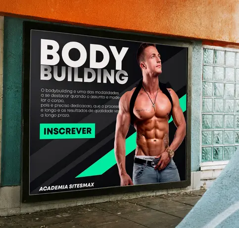 Destaque a cultura do fisiculturismo com anúncios ao ar livre.